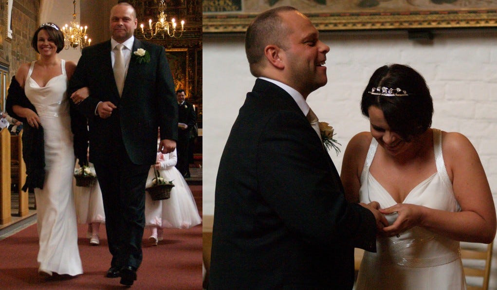 Image caption: we did a lot of hand holding on the day we got married - 22nd March 2008. We also had a good laugh as I tried to wedge Kim’s new wedding ring on to his generous sausage size finger! And yes, I got his approval before writing that. :o)