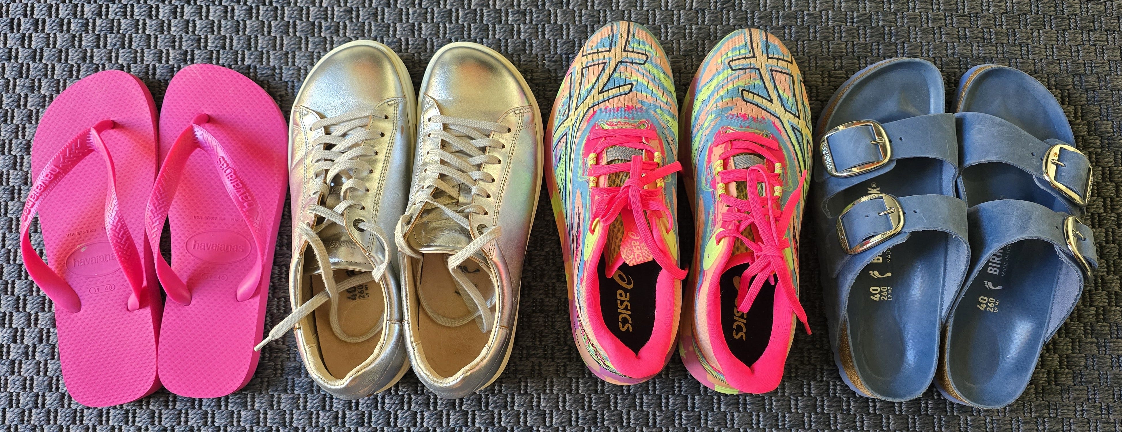 Image caption: uncomfortable ‘work’ shoes that gave me blisters and made my feet hurt are very much a thing of the past. ‘Heels’ no longer live in my closet. Now it’s bare feet, flip flops, Birkenstocks, or trainers (aka sneakers), preferably in the brightest colors I can find. If people want to work with me then they have to accept that I come as I am.
