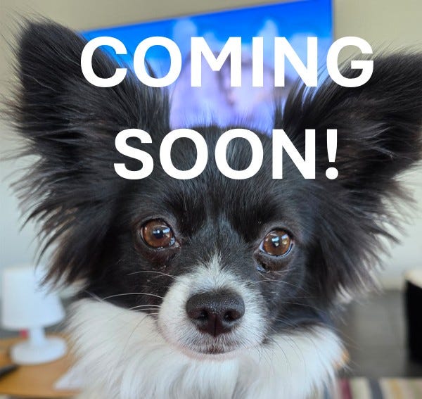 Image caption: a totally gratuitous picture of Evie in ‘gimme gimme gimme’ that treat mode! I can hope that’s the look on the faces of my Substack audience when they read about the upcoming new chapters, right?! LOL