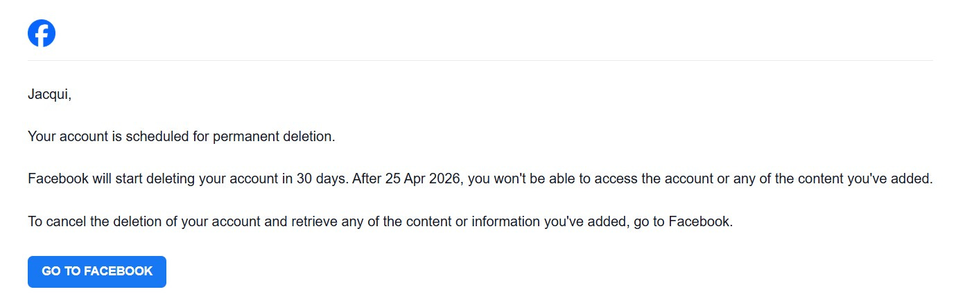 I’m an adult. I know my own mind (most of the time)! And it had taken me forever to find the right button. But still they thought that perhaps I’d made a mistake?! They wanted to give me time to regret my decision. So generous. And yes, that’s dripping with sarcasm. They sent me this email - I got something very similar from Instagram. Did they have any idea that they’d just put the final nail in the coffin?